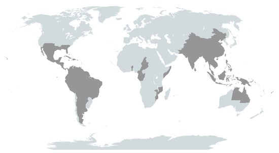 As an invasive plant, the fast-growing vine affects native flora as it climbs to the top of the canopy, covering trees and blocking sunlight from reaching plants in the understory, thus killing them [7]. Figure 1 depicts the worldwide distribution of the vines. There is no conclusive way to manage the plant, as physical, chemical, and biological management methods have been ineffective in controlling and removing it. Even if the vine is cut, it will resprout unless the underground tubers are entirely removed. Spraying the vine with chemicals had inconclusive effects, and there are currently no known biological agents to combat the vine [6].