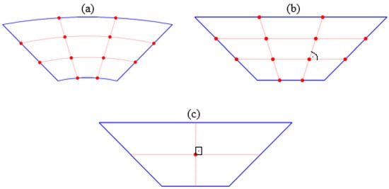 The grids at this integration point (see Figure 8c) are constant without being affected by changes in the edges of elements. That is, it is not important whether the edge of the element is bent or not, and the angle between grids at the integration point always remains as 90 degrees [39]. Even if the C3D8R element can overcome the shear locking under the bending, singular modes (hourglass modes) can take place due to its insufficient rank of rigidity matrix. These modes cannot generate stress and strain, but they are zero-energy modes that can affect the accuracy of FE analysis. They can also result in unrealistic strains, stresses, bends, and contacts in FE analysis [39]. The 3D hexahedron solid elements with eight integration points that are available can overcome shear locking as well as hourglass modes. The C3D8I element can eliminate the stresses that cause the shear locking through the additional degrees of freedom that are provided with incompatible modes, and the hourglass modes also cannot occur owing to their full integration. For these reasons, the C3D8I element was used in all FE analyses to avoid shear locking and hourglass modes. Furthermore, Korzekwa and Tremblay [46] suggested that kinetic energy and artificial strain energy should be considered to be lower than 1.0% of internal energy for valid numerical results.