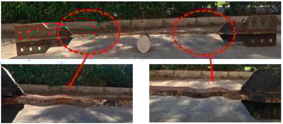 where Fy,BRB is the yield stress of CP, ABRB is the cross-section area of CP, and PC,BRB and PT,BRB are the compression and tension strength of BRB, respectively. As can be seen in Figure 14, the value of β was determined to be 1.16. At the end of the test, the steel frame remained within the elastic limit and high mode buckling was observed on the CP (see Figure 15).