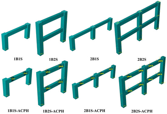 In this study, to thoroughly investigate the effect of ACPH, an ABAQUS model was initially developed for four PRC frames with different characteristics. For the purpose of calibrating these finite element models, the ABAQUS model of the frame with ACPH, as detailed in the experimental study by Yuan et al. [