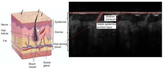 - Liu, M.; Buma, T. Biometric mapping of fingertip eccrine glands with optical coherence tomography. IEEE Photonics Technol. Lett. 2010, 22, 1677–1679. [Google Scholar] [CrossRef]