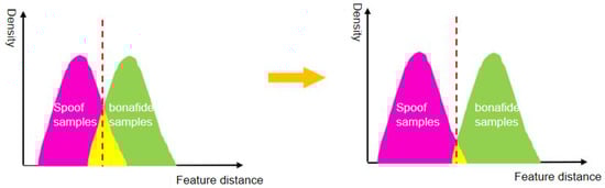 As can be seen from Table 5, simply adding the self-attention module does not significantly improve the anti-spoofing performance of the model. The area under the AUC curve only increases by 2.4% (compared with 0.9028). However, adding the variational structure can greatly enhance the model’s performance, and the equal error rate decreases by 37% (compared with 0.1865). This may be because the changes in the key information of the input samples are within a certain range rather than a fixed value, and the variational structure can separate the bona fide samples from spoof samples by introducing the data distribution of bona fide samples. In addition, this subsection also finds that by combining residual connections and the self-attention module, long-distance dependencies can be established, and the continuous features between the structural contours of bona fide samples can be well utilized.