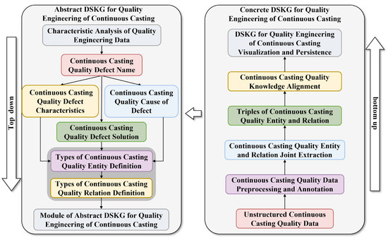 Firstly, through the quality engineering texts analysis of continuous casting, an abstract KG is designed by using a top-down approach. Then, guided by this abstract KG, a DSKG is constructed by using a bottom-up approach.