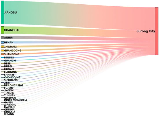 Sankey chart of the population flow of Jurong City from other provinces in China in November 2019.