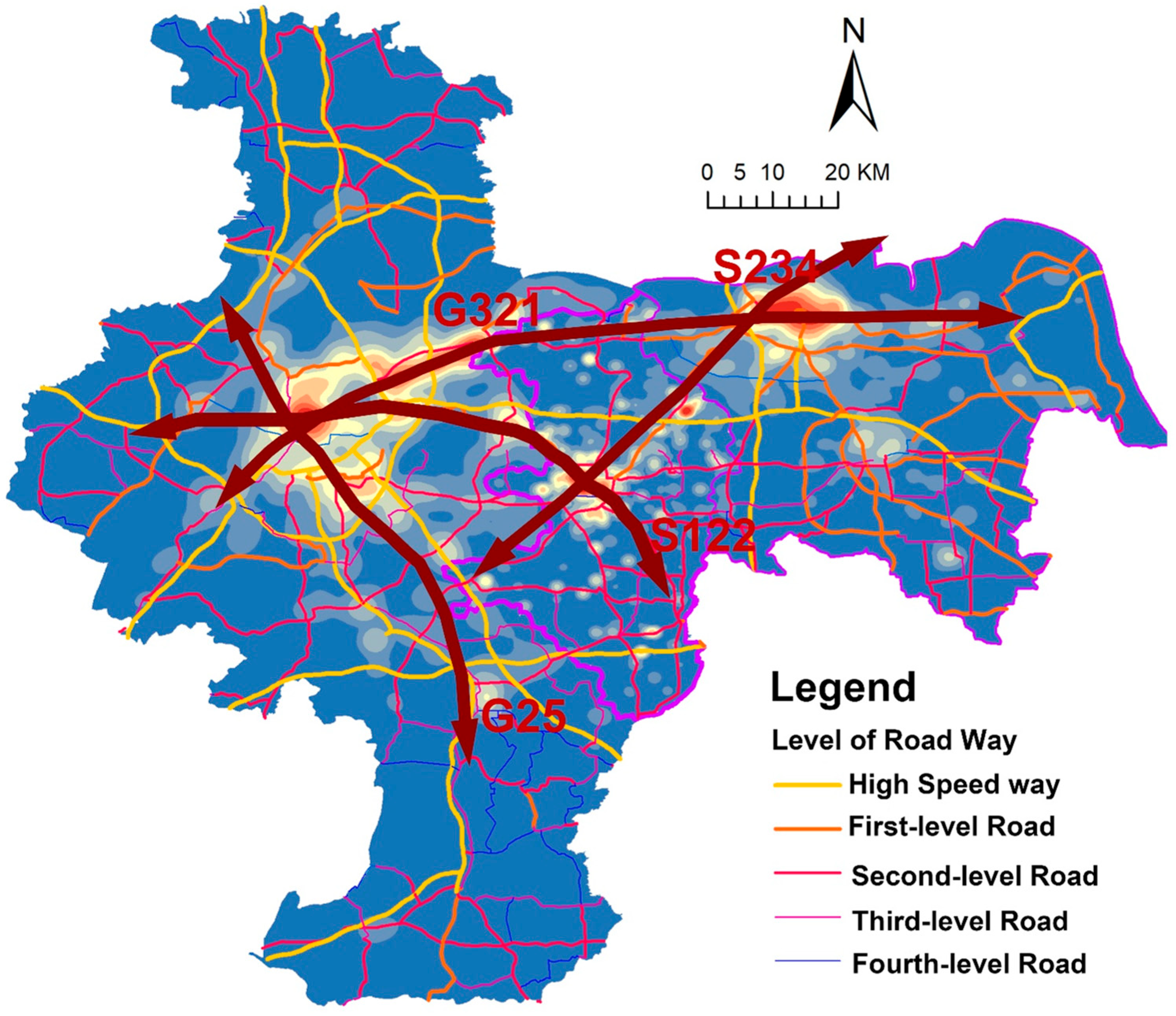 - Core interchange hubs: The main urban area of Nanjing, the central district of Jurong, and the urban area of Zhenjiang constitute the primary functional anchors. Among them, the central district of Jurong functions as the pivotal intermediary hub connecting the other two cities.