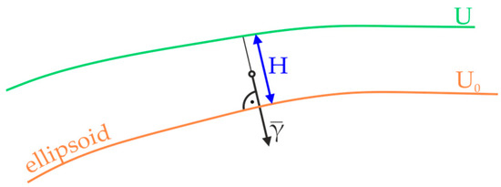 According to Bilajbegović [10], for two adjacent level surfaces (Figure 6) in the normal gravity field, the following applies: