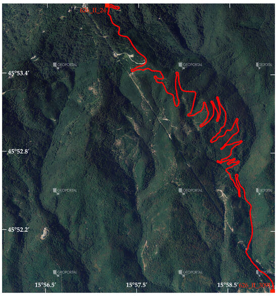 Trajectory of the measurements (the background is an orthophoto map obtained from the Croatian Geoportal [17]).