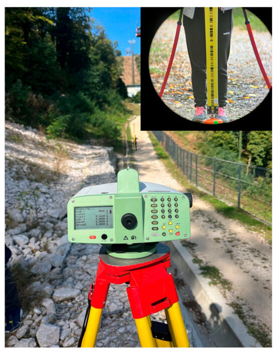 The coordinates of all the points in the leveling line were stabilized with a steel bolt and determined by GNSS using the real-time high-precise positioning service of the Croatian Positioning System (CROPOS VPPS) [18,19,20]. By using the CROPOS VPPS service, plane coordinates (E, N) in the HTRS96/TM (EPSG:3765) map projection and normal–orthometric height in HVRS71 were obtained.