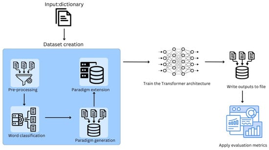 As there is a requirement for a good-quality dataset for obtaining the morphological analysis using Transformers, we create a unique dataset using an existing Kannada dictionary. A sufficient amount of data must be present in the dataset to train any neural network model. To achieve this, we created a morphological analysis dataset using a rule-based method. The morphological analysis dataset was created using Apertium Lttoolbox 3.8.0, an open source software [33]. There are four important steps outlined, which are discussed in further subsections.