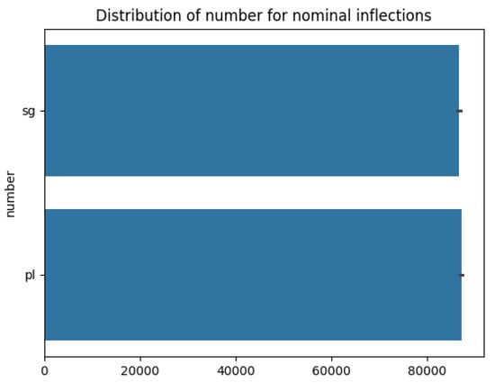 All three genders considered in the dataset have both singular (sg) and plural (pl) forms in Kannada. Hence, the plot shows equal distribution.