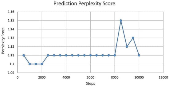 Perplexity scores in language models serve as indicators of their language processing efficacy. But in the case of morphological analysis, a model with a low perplexity score indicates higher accuracy and has been trained well on data by understanding the structure of the words present in the language. A model with a higher perplexity score is less reliable than one with a lower score. The perplexity score can be considered a direct measure of the model’s linguistic competence, with lower scores indicating superior language processing capabilities [41]. A perplexity score of one means that the model perfectly predicts the output given the input, while higher scores indicate worse performance. The perplexity score for the generated morphological analysis of nominal inflections is shown in Figure 12.