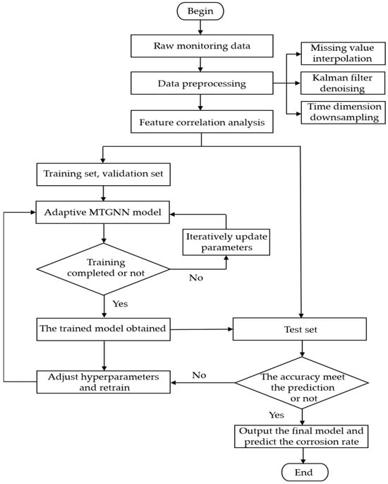 Flow of corrosion rate prediction based on adaptive MTGNN model.