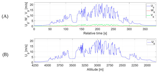 Estimations of ug and wg will correspond to the high-frequency estimation of headwind (ug-hi) and vertical gust (wg-hi). This has been extensively discussed in the authors’ previous work [28].