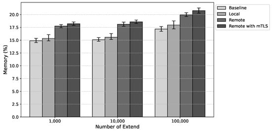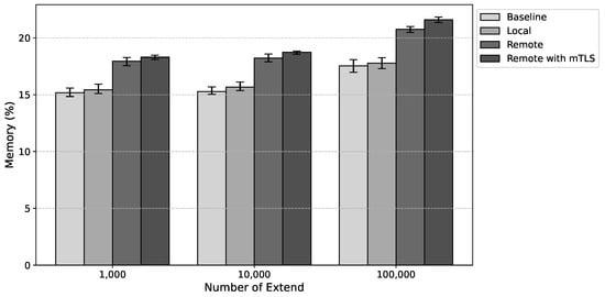 In terms of memory usage, remote anchoring led to an average increase of 2.97 percentage points without mTLS and 3.82 percentage points with mTLS compared to local anchoring.