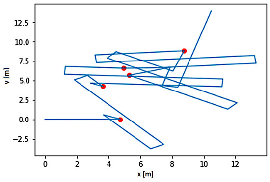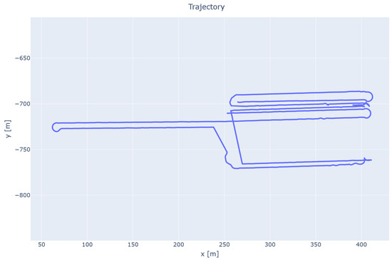 In the available literature, one can find many datasets concerning the issue of SLAM (Simultaneous Localization and Mapping), collected in cities, inside buildings, and also in difficult, diverse terrain (e.g., on unpaved ground, in fields, underwater). Unfortunately, most of them did not provide a minimal set of sensors from the point of view of the research problem (i.e., data from GPS, IMU, and odometry), or the recorded routes were not complicated (e.g., the data contained only straight-line travel). Hence, the selection of popular data is defined as Rosario [39]. Experiments carried out with different methods on this dataset resulted in a new algorithm to determine the position of a moving object (Section 5.1).