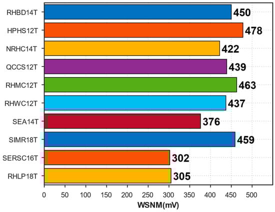 WSNM comparison between the proposed RHLP-18T cell and previous works.