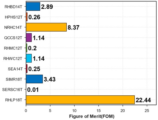 Evaluating an SRAM cell requires balancing multiple performance metrics that often exhibit trade-off relationships. To enable a comprehensive comparison that accounts for these trade-offs, a Figure of Merit (FOM) is employed. This FOM integrates key parameters related to stability (HSNM, RSNM, WSNM), effective critical charge (Qc), speed (RAT, WAT), and power consumption (hold power). The specific formula used to compute the FOM in this study, as presented in Equation (3), was adopted with reference to previous works [9,10,11,12,13,14,15,16,17]: