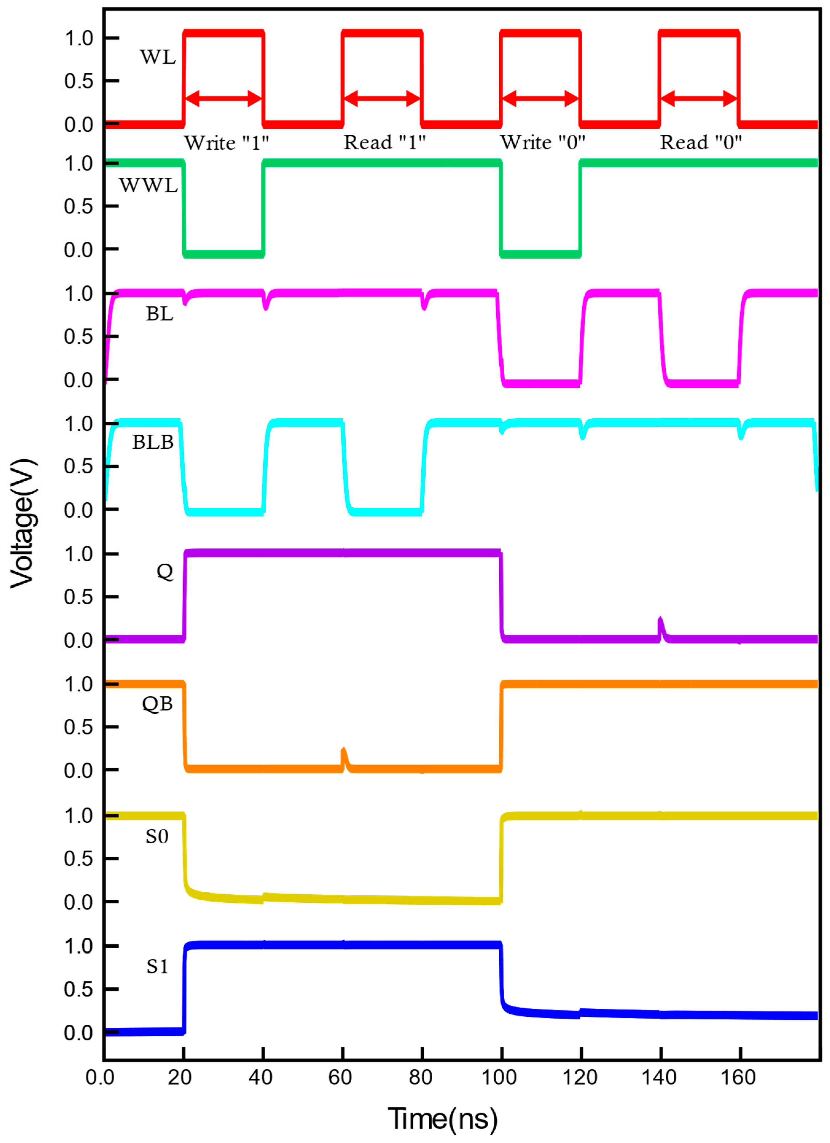 Waveforms of the memory operation of proposed RHLP-18T cell.