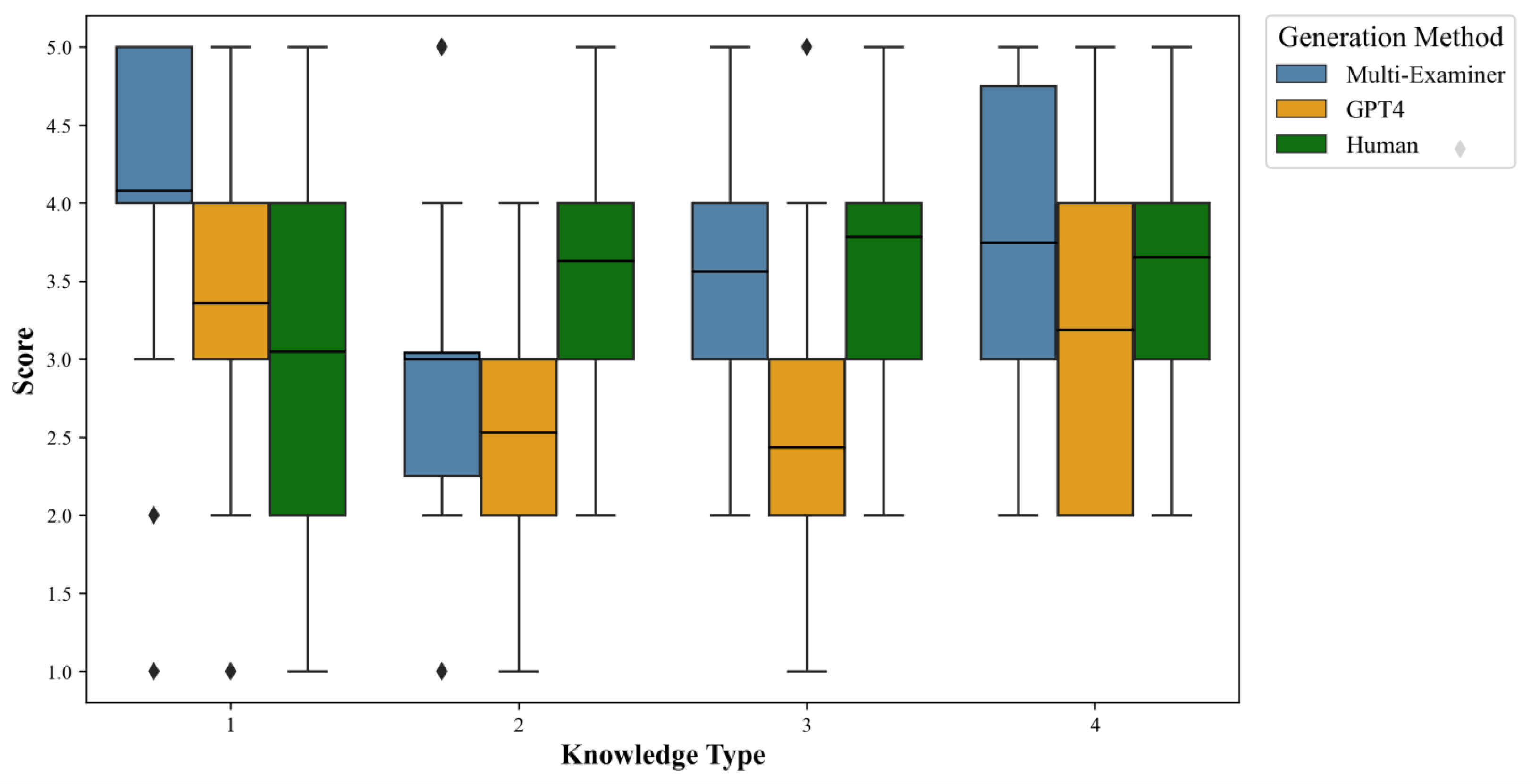 This study constructed an evaluation framework based on Bloom’s taxonomy, focusing on three dimensions: distractor relevance, question diversity, and higher-order thinking. We employed a questionnaire to gather insights regarding the quality of the automatically generated MCQs, allowing experts to evaluate all questions from Multi-Examiner, GPT-4, and humans.