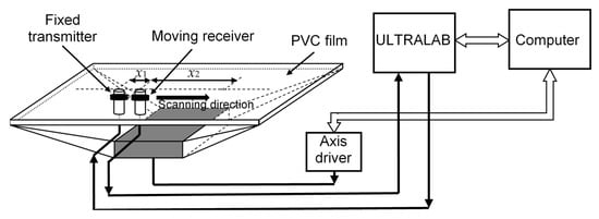 Another case of using the proposed algorithm is the digital processing of signals from experimental studies of d = 200 µm-thick polyvinyl chloride (PVC) film [25]. The film with lateral dimensions 0.21 × 0.297 m2 was fixed in a PVC film-mounting bracket (Figure 6).