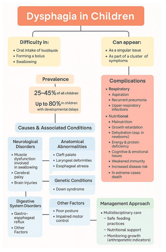 - Zdanowicz, K.; Rycyk, A.; Lebensztejn, D.M.; Daniluk, U. Dysphagia Among Children—A Single-Center Experience. J. Clin. Med. 2025, 14, 2906. [Google Scholar] [CrossRef] [PubMed]