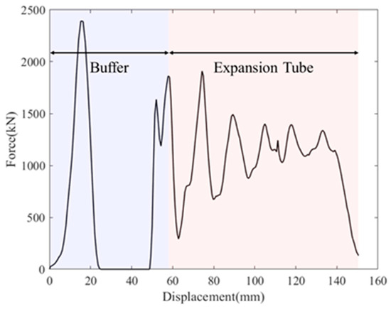 The force–displacement curve of the expansion tube and buffer: (a) expansion tube; (b) buffer.