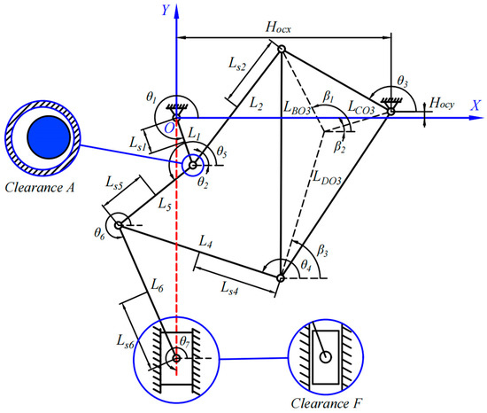 With the swift economic advancement, the machinery manufacturing sector is steadily evolving towards greater speed, enhanced precision, and increased productivity. The mechanical system’s functionality and efficiency are critically dependent on the mechanism, which is essential for its overall operation. Therefore, the study of mechanism dynamics is of considerable practical significance and has a significant impact on the development of the manufacturing industry. Among these mechanisms, multilink mechanisms, serving as critical components, have found extensive applications across a variety of fields, including medical devices, mobile robotics, aerospace, agricultural machinery, and compression equipment, garnering considerable attention and in-depth investigation from scholars. In multilink mechanisms, various components are interconnected through revolute and prismatic joints. Yet, due to factors like manufacturing tolerances, installation inaccuracies, and friction losses, clearances often arise in the kinematic pairs. Clearances can result in adverse interactions among the kinematic pairs, substantially impacting precision and stability of the mechanism’s movement [1,2,3,4,5,6,7,8,9]. So, it is crucial to conduct comprehensive study on the dynamic behaviors of multilink mechanisms, particularly those with mixed clearances.