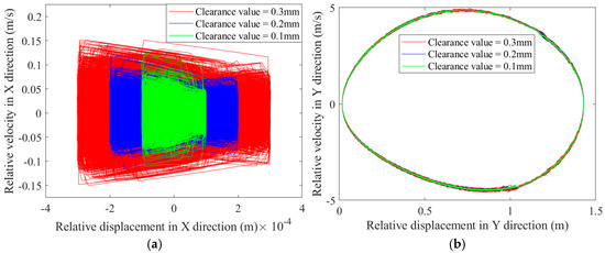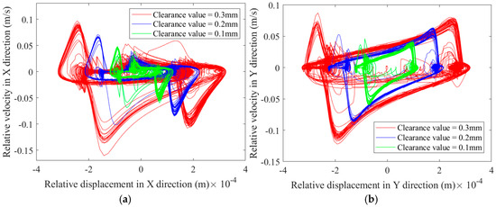 Phase diagram at the clearance of prismatic joint: (a) phase diagram of clearance F in the X-direction; (b) phase diagram of clearance F in the Y-direction.