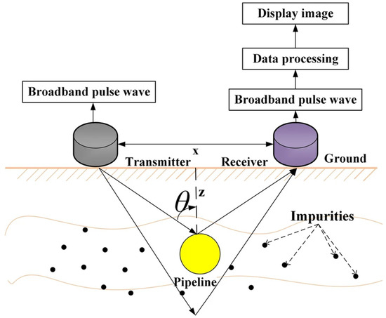 To address such risks, non-destructive geophysical methods have been widely adopted, with Ground-Penetrating Radar (GPR) being one of the most commonly used techniques. GPR operates by emitting high-frequency electromagnetic waves and analyzing their reflections from subsurface features with differing dielectric properties [5,6]. While GPR is capable of detecting both metallic and non-metallic utilities under favorable conditions, its performance is highly affected by soil conductivity, water content, and material type. Ground-Penetrating Radar (GPR) has been widely used for subsurface detection; however, its effectiveness diminishes in complex soil conditions, such as heterogeneous compositions or high moisture content. Ref. [7] reviewed the application of GPR in agricultural settings and noted challenges in accurately sensing subsurface features under such conditions. Furthermore, ref. [8] highlighted the limitations of electromagnetic methods like GPR, particularly in detecting non-metallic pipelines such as PVC or PE, and emphasized the potential of acoustic-based techniques as alternative solutions. Ref. [9] proposed an improved GPR data processing approach tailored to subsurface utility detection in urban environments, demonstrating a higher detection accuracy even under complex underground conditions.