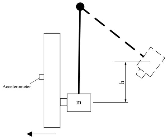 Given the difficulty in determining the coefficient , an accelerometer is installed on the pedal to measure the acceleration peak. Subsequently, the peak force can be calculated as induced by the pendulum, and the scaled distance corresponding to the simulated blast is subsequently calculated using the Expression (10). The schematic diagram of the pendulum impact is shown in Figure 3.