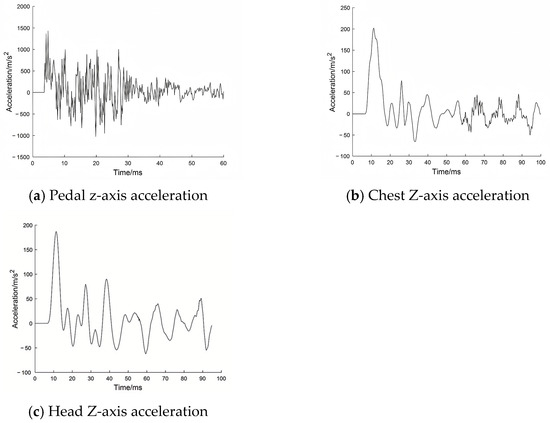 Due to the inherent instability of energy release in explosive detonations, using explosive charge as input for finite element models introduces considerable uncertainty. As a result, this study focuses on the measured pedal acceleration as the key input parameter. Although using the pedal acceleration measured during testing as the input for the finite element model neglects the impact of local pedal deformation, since the head and neck do not directly interact with the pedal, the effect of local pedal deformation on the head–neck response is negligible.