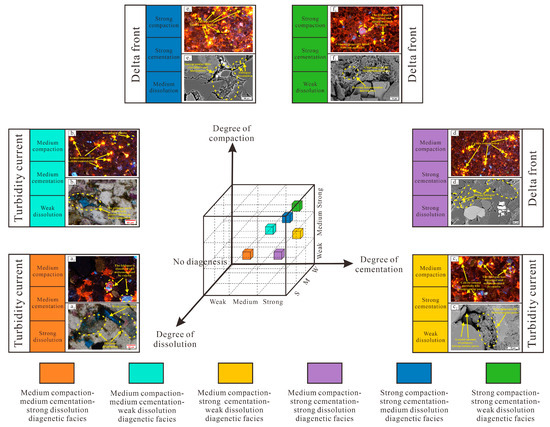 - Teng, J.B. Division and evaluation of diagenetic facies of reservoirs in the control of fluid-rock chemical interaction: A case study of the lower Es3 in Jiangjiadian-wawu area. Pet. Geol. Recovery Effic. 2017, 24, 1–9. [Google Scholar] [CrossRef]