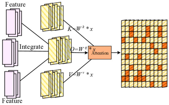 where O denotes the attention output, X denotes the input features, WQ, WK, and WV denote the weight matrices, and dk denotes the dimension of the key [36].