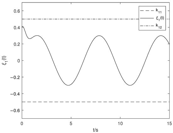 In this paper, the constraints of system states are required to satisfy and , so we design the constraint parameters as , , and . The control gain can be assigned to and . At the same time, the initial values of system states are and .