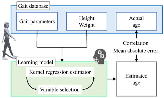 Study scheme. We estimated age based on the height, weight, and gait parameters of walkers using kernel regression analysis. Adapted from [].