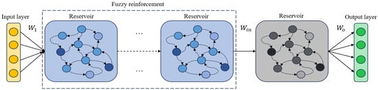 The aforementioned fuzzy ESN is a fundamental component of the DFESN illustrated in Figure 3. In the DFESN model, the original input signal passes through multiple fuzzy ESNs for feature extraction, ultimately being classified by a final ESN.
