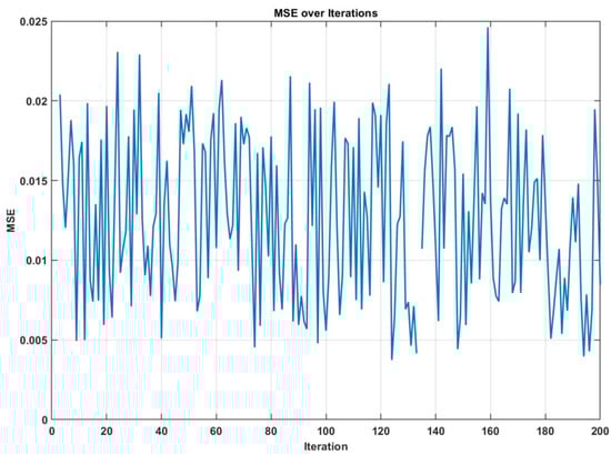 Figure 5 illustrates the variation in Mean Squared Error (MSE) of the DFESN throughout the optimization process. Despite some fluctuations in the curve, an overall decreasing trend in the MSE can be observed. The MSE reached its minimum value at iteration 124, at which point the best hyperparameters are found to be a reservoir size of 500, a spectral radius of 0.1, a sparsity parameter of 0.01, and a number of fuzzy clusters of 30.