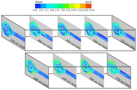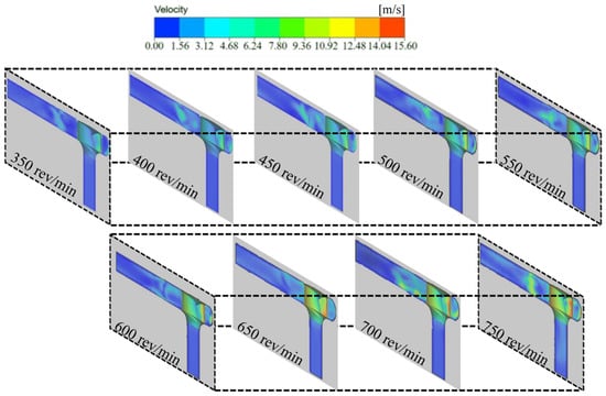 - Through the combined analysis of the interaction effect of rotational speed and mixing ratio, it was determined that a combination of 550–600 rev/min and a 4/6 mixing ratio could optimise the velocity distribution of the flow field and the mechanical response of the krill body concurrently. In this condition, the maximum velocity in the centrifuge and the particle collision force on the krill body were both significantly reduced, and the uniformity of the distribution of the particle collision force was improved. In addition, the damage to the krill body was significantly reduced in comparison with the other 25 groups of conditions. This provides a basis for the selection of krill suction pump parameters.