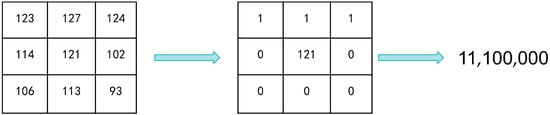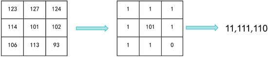 When the central pixel’s intensity abruptly changes from 121 to 101, the corresponding bit-string transitions from 11,100,000 to 11,111,110, and this drastic numerical variation significantly impacts the matching error.