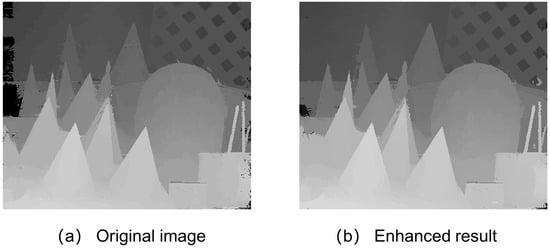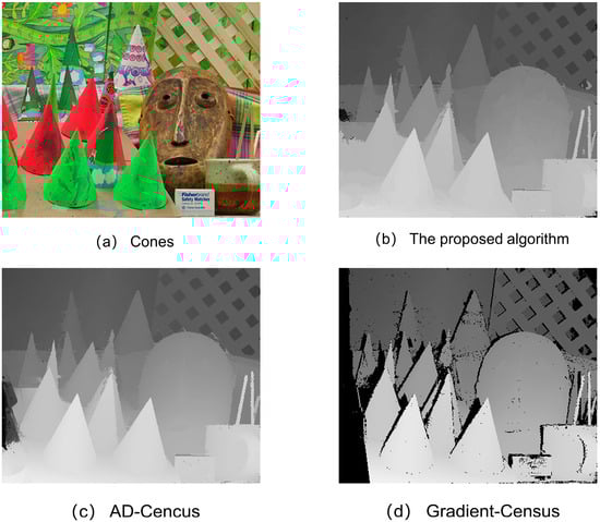 The main experimental parameters of the proposed algorithm are listed in Table 1. In the experiments, the disparity threshold was set to 1 pixel—this means that when the experimental data were compared with the ground-truth disparity map, a pixel would be identified as a mismatched point if its error exceeded 1 pixel.
