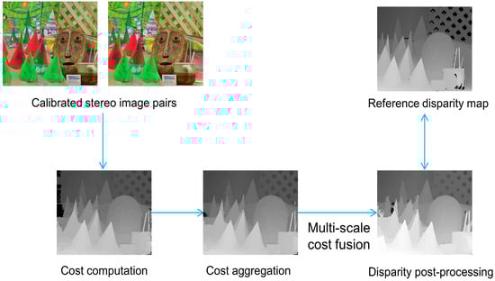 The integrated post-processing framework ultimately yields high-precision disparity maps with subpixel accuracy. Figure 7 shows the flowchart of the stereo matching algorithm.