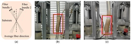 is the material constant, , is the shear modulus. is the first invariant of the Cauchy–Green tensor; , , where is the deformation gradients and is the unit tensor. characterizes the mechanical response of the fiber in the preferred direction. are stress-type parameters, and are uncaused parameters. The orientation of the fibers is represented by the invariants and . The anisotropic orientation in the tissue is assumed to be a helical orientation of degrees with respect to the longitudinal direction, as shown in Figure 1a. Therefore, the invariants are equal.