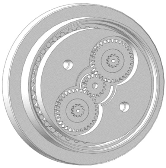 To incorporate dynamic factors into the subsequent transmission error analysis, the relevant transmission parts must be treated as flexible bodies. Based on the structural characteristics of the transmitting gear train, the first-stage planetary gear transmission part rotates at a higher speed and bears a smaller impact on the output transmission error compared to the second-stage pin-cycloid gear transmission part, so that local deformations are relatively negligible. In order to add dynamic factors to the subsequent transmission error analysis, it is necessary to consider the relevant transmission parts as flexible bodies. According to its structural characteristics, the first-stage planetary gear transmission part rotates faster, and the torque it bears is smaller compared to the second-stage pin-cycloid gear transmission part, resulting in relatively negligible local deformations. The second-stage pin-cycloid gear transmission part transmits a larger torque and features a compact structure. The output part of the planet carrier is closely connected to the second-stage pin wheel, crankshaft, and cycloid wheel, which are treated as flexible bodies.