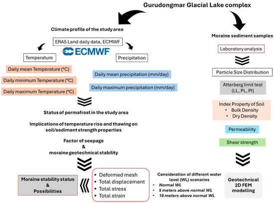 Step-by-step procedure for the stability study of the Gurudongmar Glacial Lake complex.
