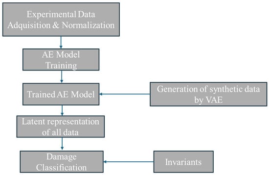 In this way, VAEs provide a more effective and diverse use of the latent space, which makes it possible to work with a wider range of variations in the input data. By means of this capacity, all the dimensions of the latent space are explored instead of relying on only a few. This feature can become very powerful in applications such as damage monitoring and synthetic data generation. As VAEs are generative models, not only do they learn to compress and reconstruct the data, but they are also able to generate new data by sampling from the latent space and following the learned distribution of the training set. VAEs are very powerful for synthetic data generation tasks because of their ability to learn a probabilistic latent space representation from complex data architectures, which allows them to capture the underlying structure of the training dataset. This makes them especially useful for those problems whose availability of data for network training is scarce and imbalanced. By using VAEs, the quality of a dataset can be enhanced by producing more representative and diverse simples based on trends learned from real data. The development of a robust system able to recognize and react to a variety of damage patterns, potentially not observed in the training dataset, is vital for our work, and, therefore, VAEs were used here as a tool to generate synthetic data.