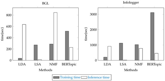 In this work, we selected LDA, LSA, and NMF as traditional algorithms for baseline methods. LDA’s parameters include n_components, doc_topic_prior, topic_word_prior, and learning_method. LSA’s parameters are n_components, n_iter, and n_oversamples. NMF’s parameters are n_components, solver, beta_loss, and other parameters. However, we focused solely on the n_components parameter, which determines the number of topics, and left other parameters at their default states. In upcoming experiments, other algorithms, such as LDA, LSA, and NMF, were not considered for hyperparameter tuning due to their inherent limitations when dealing with unprocessed log data and their dynamic density. These algorithms rely on fixed or rigid structures, making them less effective in capturing the evolving and non-uniform characteristics of log messages.