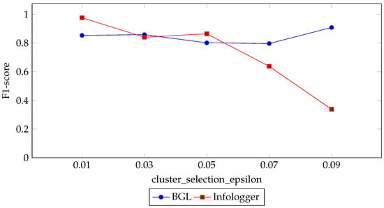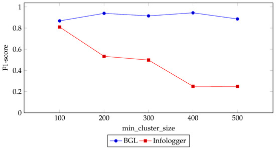 The HDBSCAN introduces min_cluster_size as an additional parameter to DBSCAN. It serves as a critical determinant for the minimum number of points required to form a cluster by establishing the smallest number of log messages that the algorithm will recognize as a valid cluster, thereby influencing the resolution of clustering results. This parameter ensures that clusters are composed of a sufficiently dense group of points, avoiding the identification of noise or outliers as separate clusters. A smaller min_cluster_size allows the algorithm to detect finer-grained, potentially smaller clusters, while a larger value promotes the formation of broader and more robust clusters. However, a larger value also ignores small clusters if it is excessively large. This parameter is particularly important in controlling the granularity and reliability of clustering outcomes.