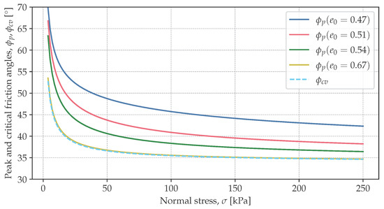 - Chakraborty, T.; Salgado, R. Dilatancy and shear strength behavior of sand at low confining pressures. In Proceedings of the 17th International Conference on Soil Mechanics and Geotechnical Engineering: The Academia and Practice of Geotechnical Engineering; IOS Press: Amsterdam, The Netherlands, 2009; Volume 1, pp. 652–655. [Google Scholar] [CrossRef]