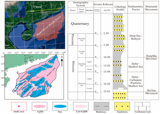 - Li, Z.; Ding, L.; Li, X.; Li, X.; Wu, Y. Division of high-resolution stratigraphy in sedimentary sequence theory and prediction of lithological traps: A case study of the Neogene in Enping Sag, Pearl River Mouth Basin. Mar. Geol. Front. 2023, 39, 73–82. [Google Scholar] [CrossRef]