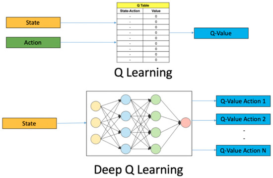 - Mnih, V.; Kavukcuoglu, K.; Silver, D.; Rusu, A.; Veness, J.; Bellemare, M.; Graves, A.; Riedmiller, M.; Fidjeland, A.K.; Ostrovski, G.; et al. Human-level control through deep reinforcement learning. Nature 2015, 518, 529–533. [Google Scholar] [CrossRef] [PubMed]
